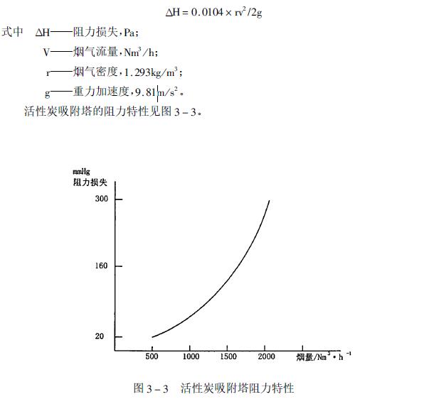 根据运转时测试结合计算整理对于采用浸泡水洗的4mm活性炭床层在正常条件下,床层阻力公式如下: