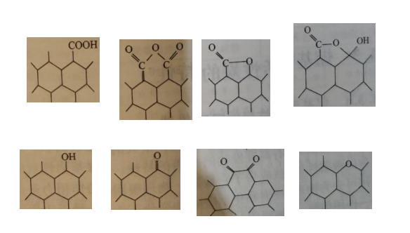 氧和氢是煤基活性炭所含zui多的杂原子,大部分以化学键与碳原子结合形成有机官能团,形成了活性炭组成的有机部分。活性炭表面可能存在的几种含氧官能团如图1-3所示。