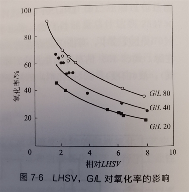 氧化率=k(LHSV)-0.5(G/L)0.4(T)1.5 (7-14)
