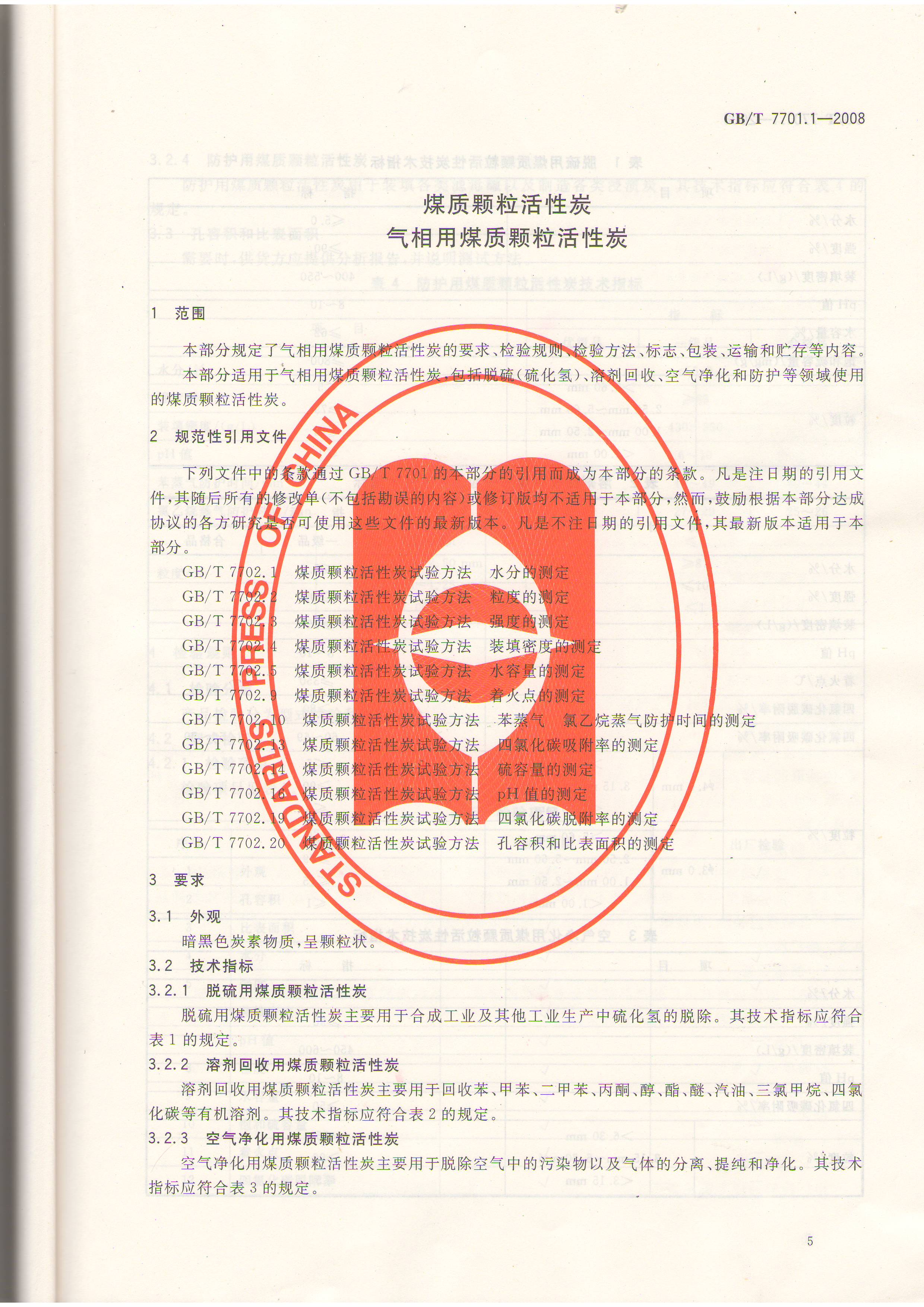 煤质气相用颗粒活性炭标准